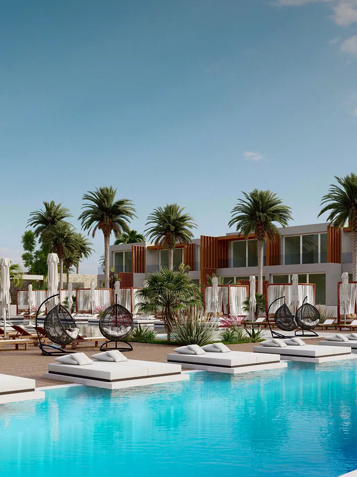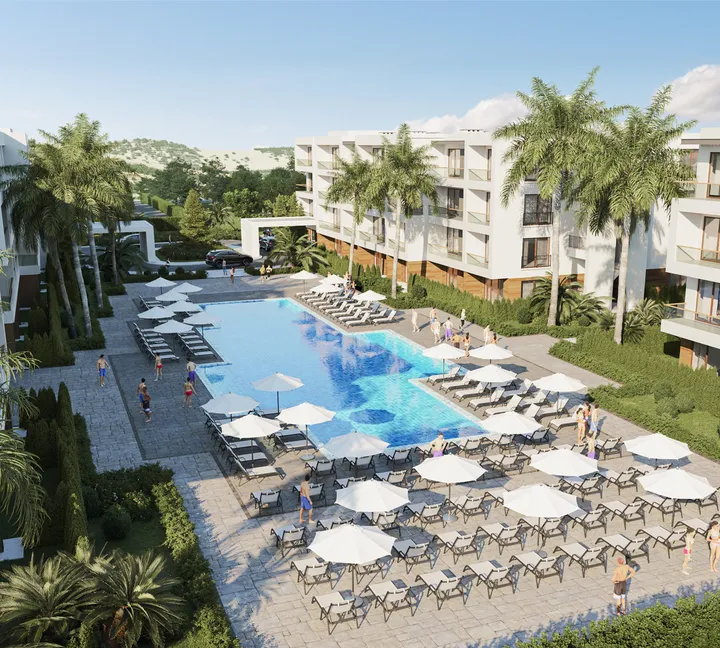 Респектабельный комплекс из 16 корпусов в стиле минимализма. Природные оттенки фасадов и прозрачные панорамные окна гармонично вписывают квартал в курортный ландшафт. С просторных террас открываются живописная панорама Каспийского моря. В центре комплекса — большой приватный бассейн с лаунж-пространством.