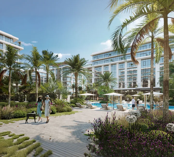 Пять белоснежных зданий премиум-класса в стиле европейского минимализма. Панорамные окна выходят на аквамариновые бассейны и изумрудные пальмы, пятиметровые потолки и прекрасная инсоляция наполняют пространство светом — здесь можно жить как на курорте 365 дней в году.