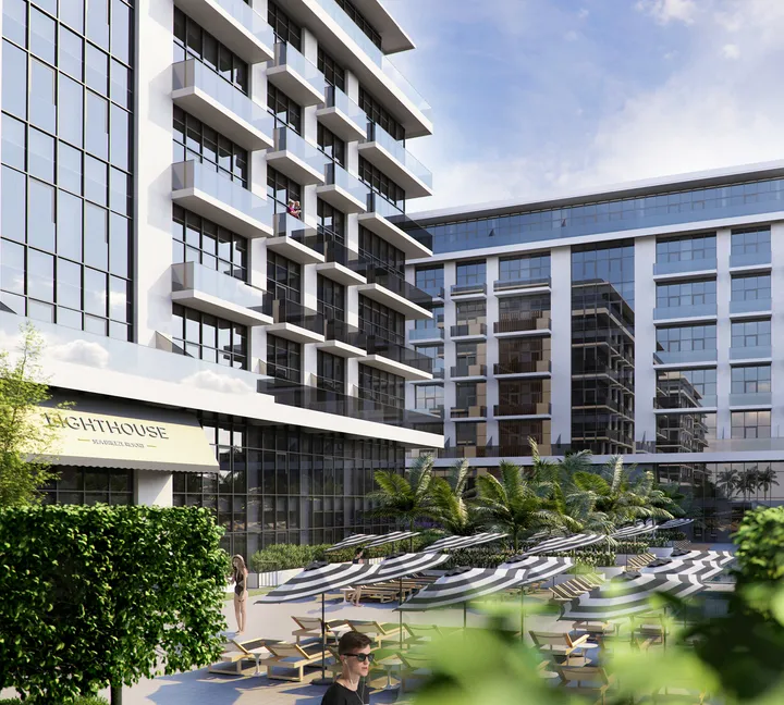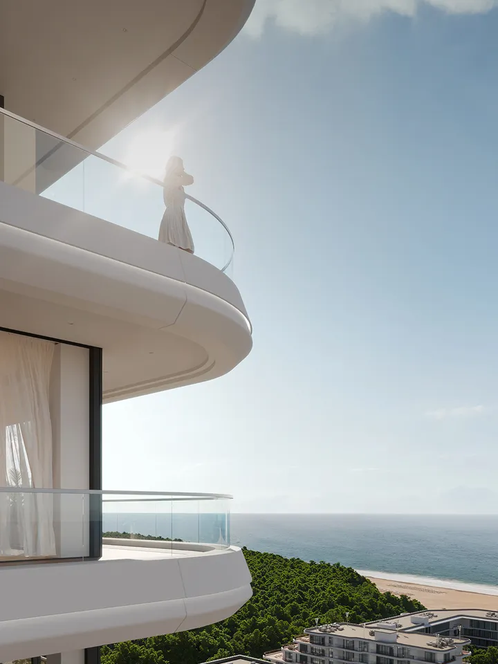 Коллекция белоснежных зданий в стиле европейского минимализма. Панорамные окна выходят на аквамариновые бассейны и изумрудные пальмы. Пятиметровые потолки, прекрасная инсоляция, завораживающий вид на море — здесь можно жить как на курорте 365 дней в году.