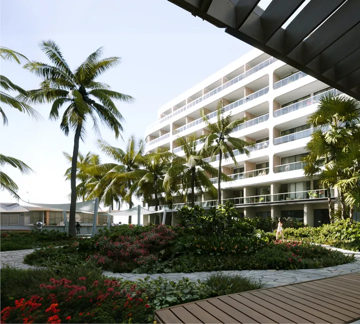 Футуристический апарт-отель, напоминающий каскад волн, обнимающих каспийское побережье. Уникальная архитектура сливается с безмятежной природой: на открытых террасах созданы зеленые парки тропических деревьев.
